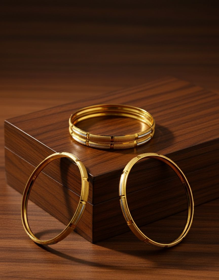 These bangles showcase exquisite artistry with a smooth, polished texture that shines from every angle. Designed with precision and style, they symbolize strength wrapped in elegance.